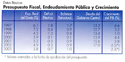 de aprobación del presupuesto 2003, y constituye una de las exigencias