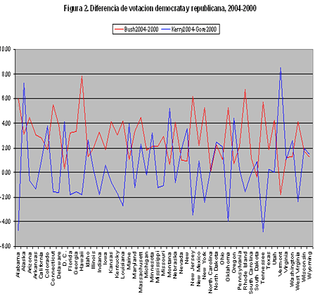 el 2000, y de Kerry el 2004 respecto a Gore el 2000. Como queda en